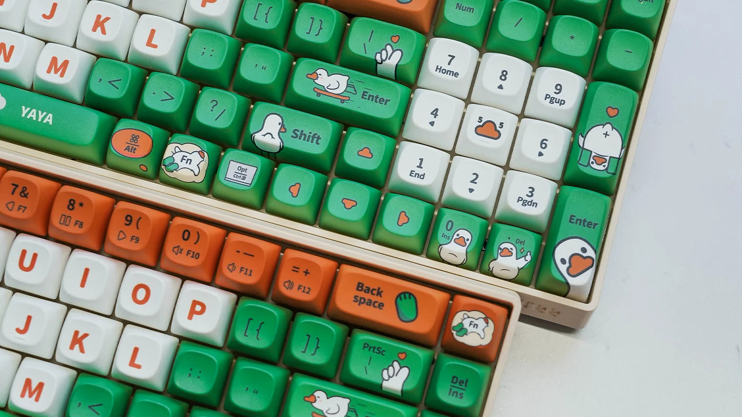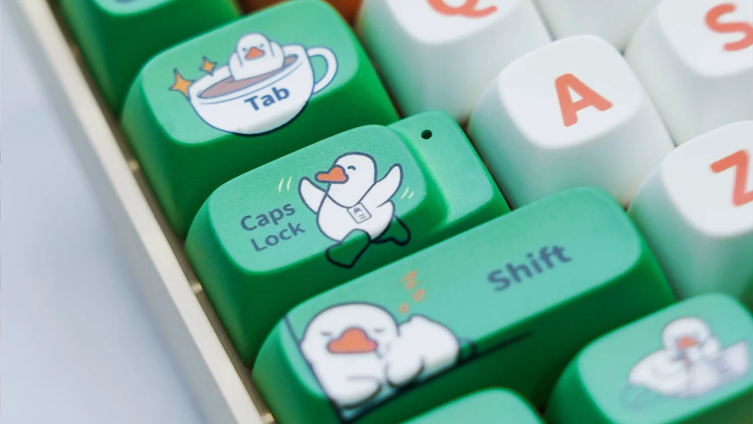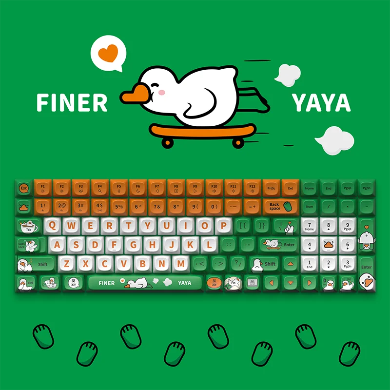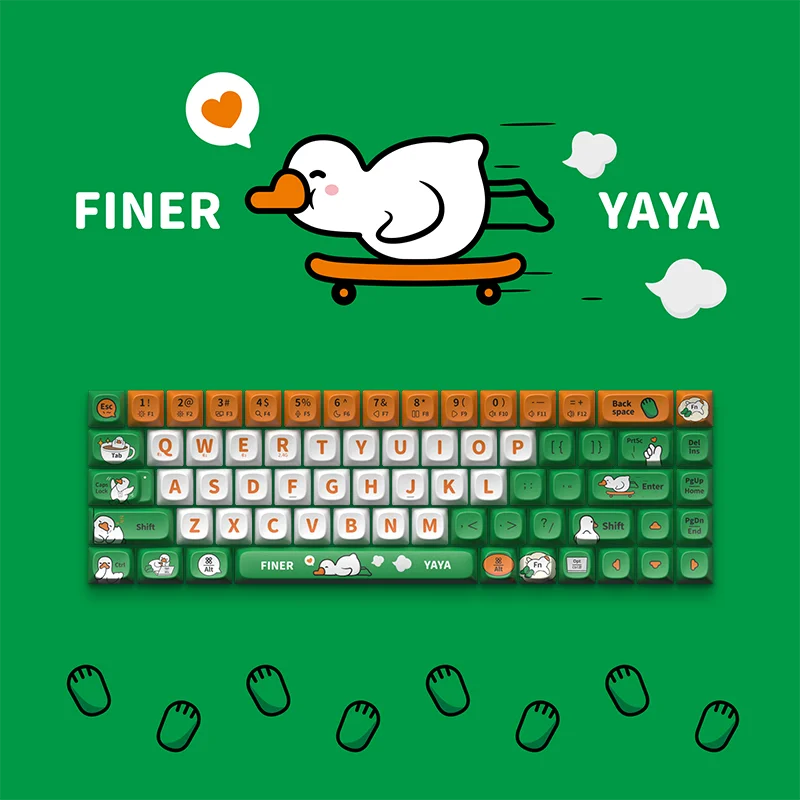 Brighten your keyboard with "Yaya Duck" keycaps, inspired by the whimsical duck from Finerworld, who is the pet of “Finner”. Known for his grumblings yet joyful life with humans, Yaya offers a playful and happy vibe to your daily interactions. Perfect for bringing a bit of joy and humor to your daily typing.