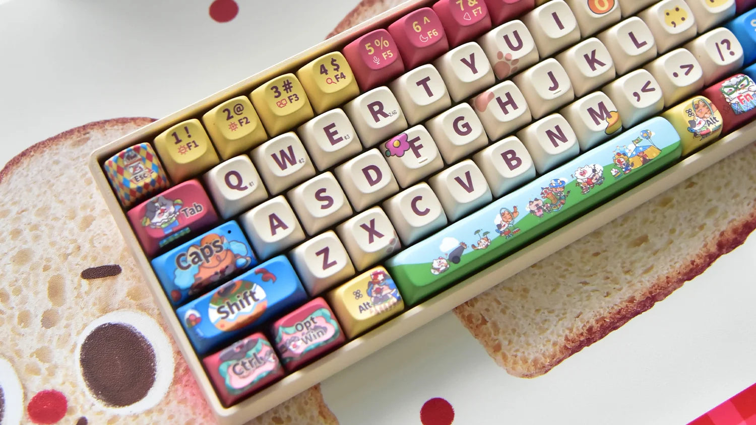 Step right up to the whimsical world of our "Cats' Paradise" keycaps, where cats are the stars of the Circus. From acrobatic antics and magical illusions to singing sensations and hoop-jumping trainers, these keycaps feature colorful, lively depictions of cats in various circus roles. The primary colors of red, yellow, and blue enhance the playful and dynamic vibe,Bringing the joy of a circus right to your fingertips with these vibrant and amusing keycaps.