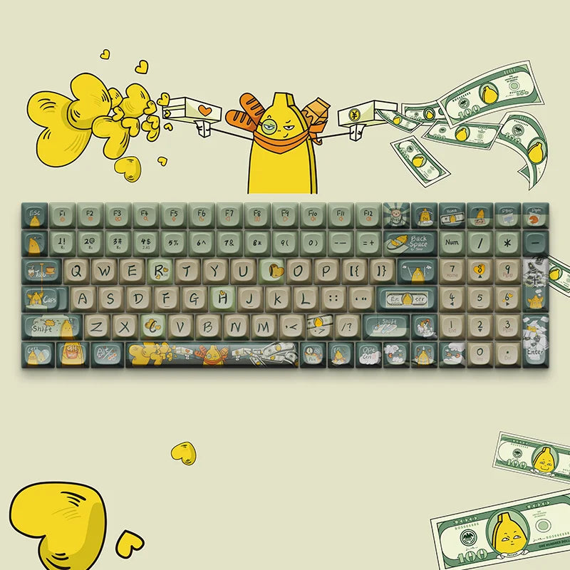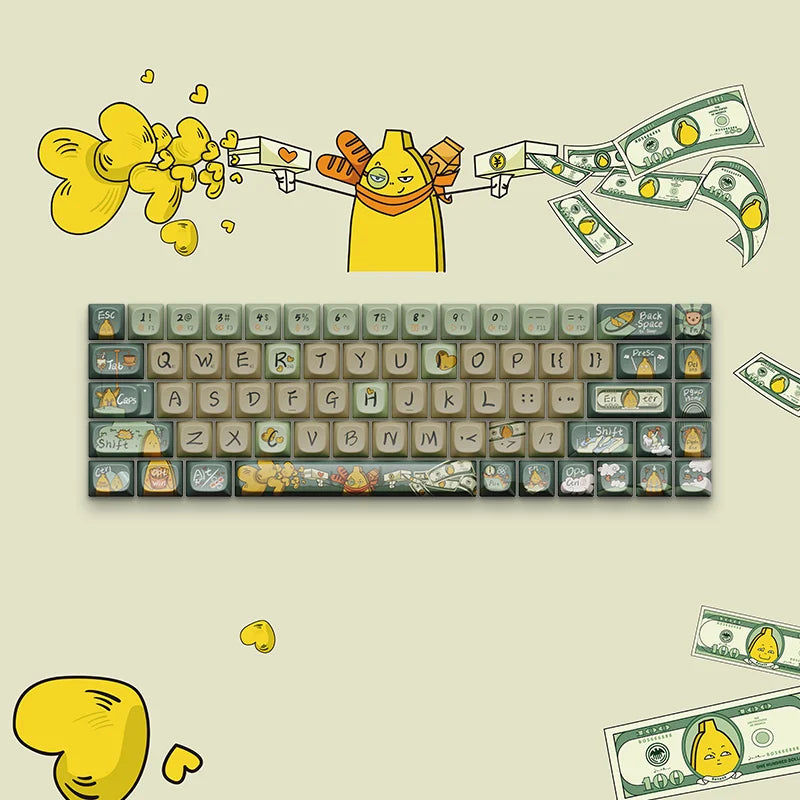 Embrace the dynamic energy of today's go-getters with our "Crazy Banana" keycaps, designed to resonate with the hustle of young professionals. These keycaps symbolize the vibrant pursuit of success and the desire to earn more while young. Every keystroke on “Crazy Banana”, encourages you to keep moving forward in your career with passion and persistence. Perfect for those making their mark in the world.