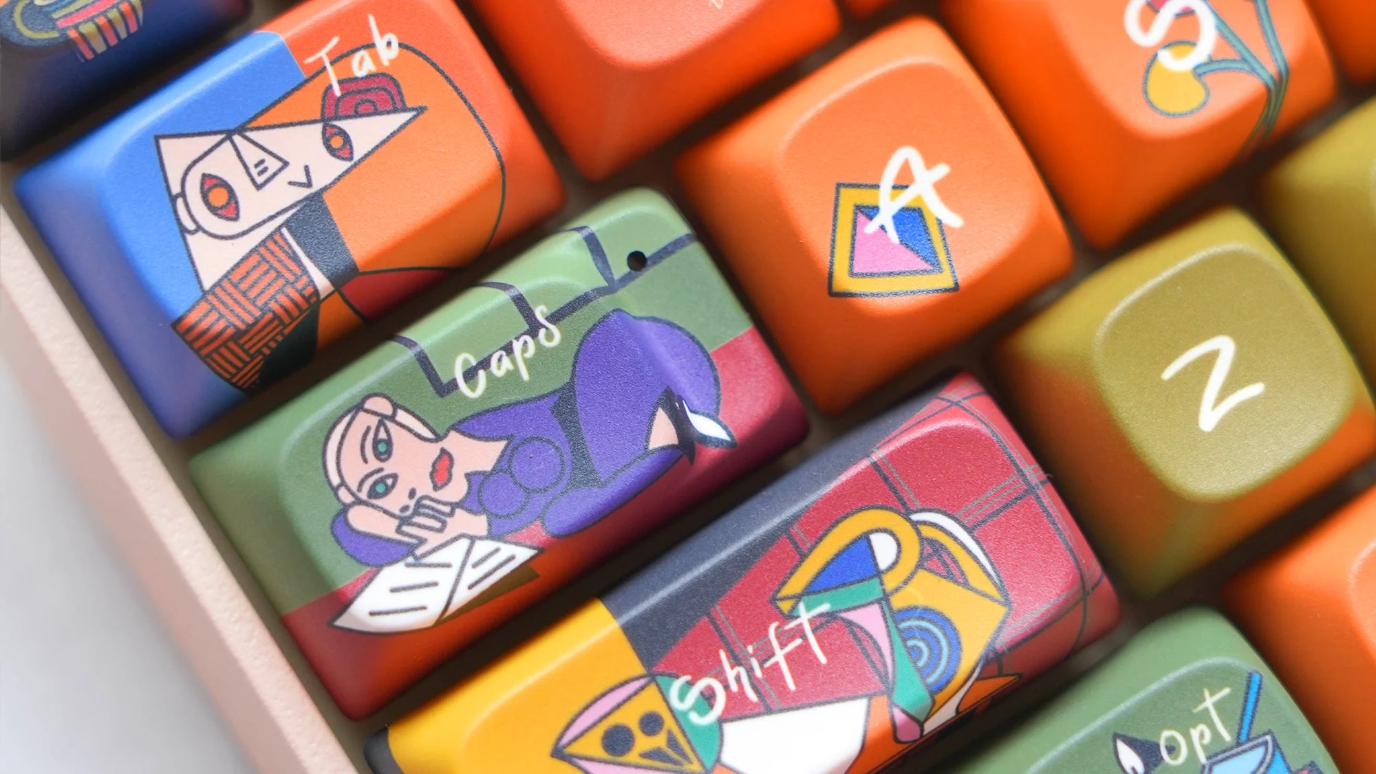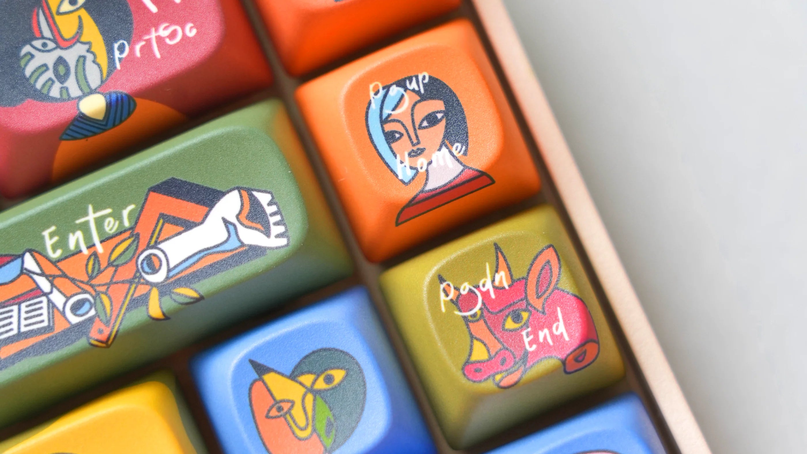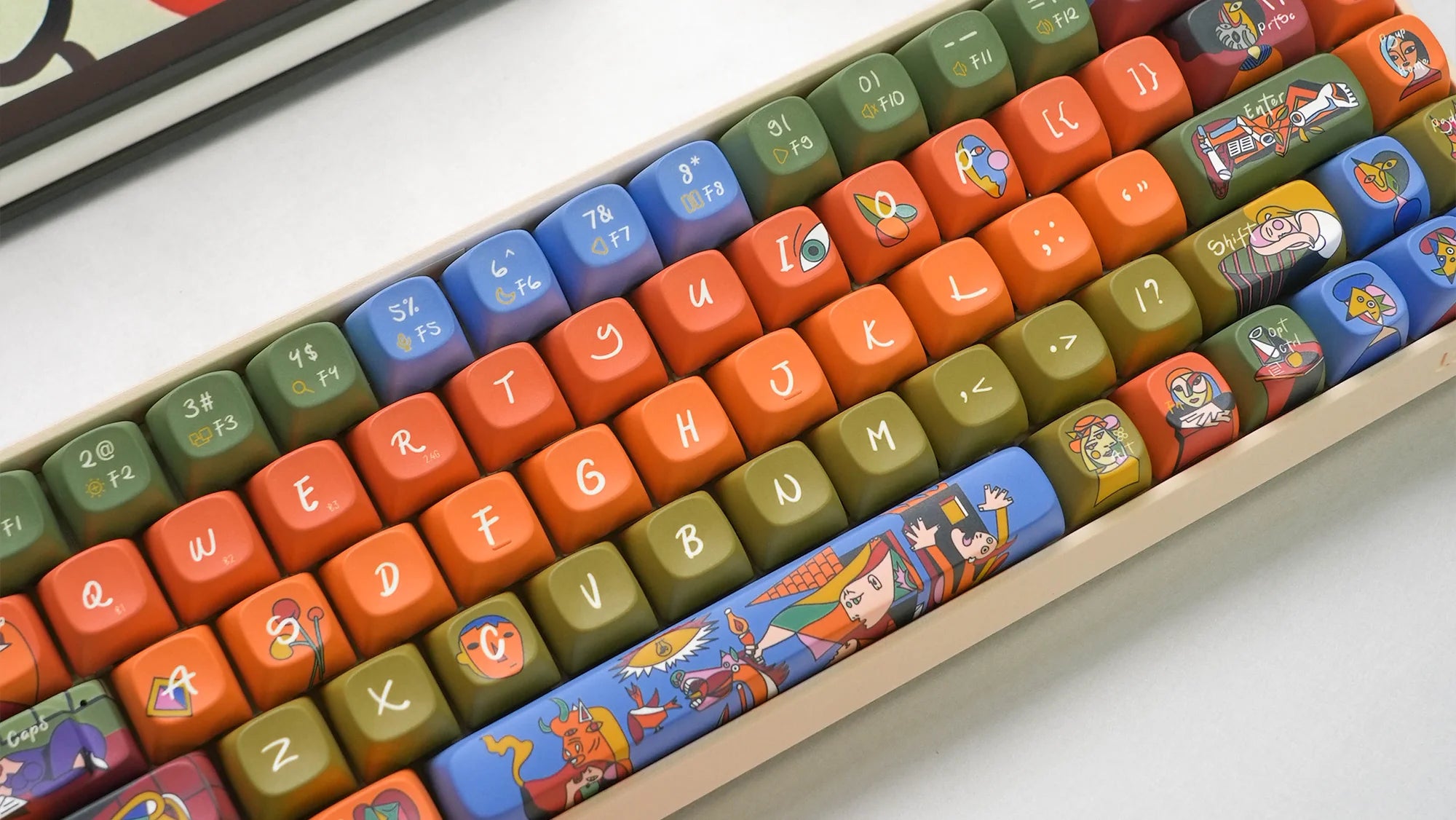 Looking back at the changes in Picasso's painting style throughout his life, why did he keep breaking conventional forms in his painting career?Shape Your World, Stroke by Stroke.Dive into Picasso's revolutionary art with the set of Picasso's Gallery Keycaps, inspired by his Synthetic Cubist style. The set of keycaps celebrates his defiance of conventional forms, blending rational abstraction with geometric compositions. Experience a dynamic visual journey as these keycaps reconfigure objects using space, color, and line to create vibrant tension. Transform your keyboard into a gallery of Picasso's diverse styles and embrace the creativity of cubist art.