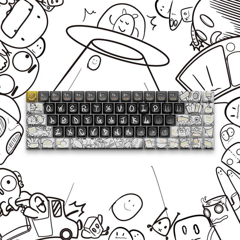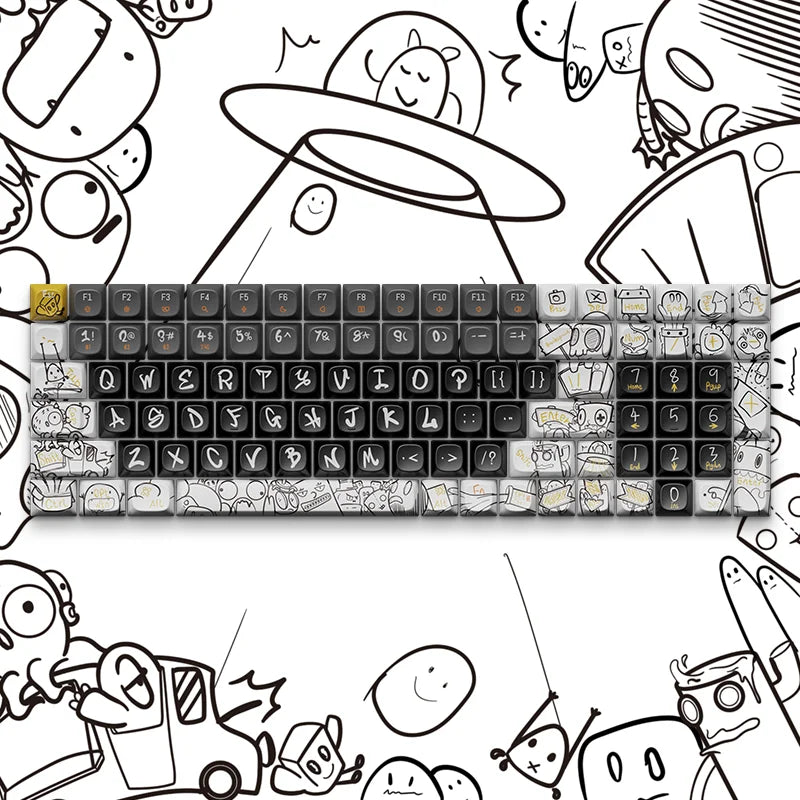 This design captures the essence of fun-loving soul through creative black-and-white style graffiti art. Designed to inject humor and quirky surprises into the monotony of everyday life, each keycap is a celebration of joy and playfulness. As you type, imagine tapping not just keys, but tapping into the very essence of amusement itself. Transform your keyboard into a canvas of magic ideas and cheer!