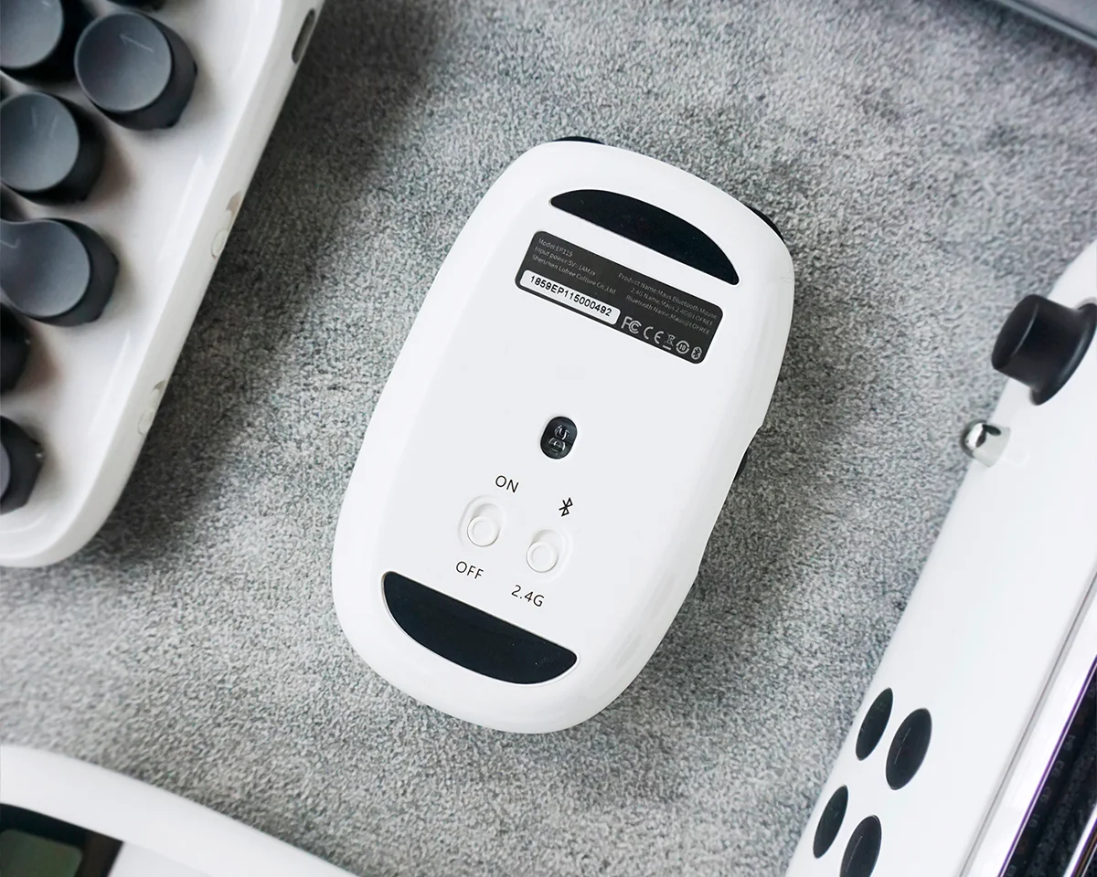 It supports bluetooth 4.0 and 2.4GHz dual-mode connection. Easy to switch between two devices(with Bluetooth mode and 2.4G mode) in a switch button on the bottom of the mouse. Simple and convenient to work from your devices.