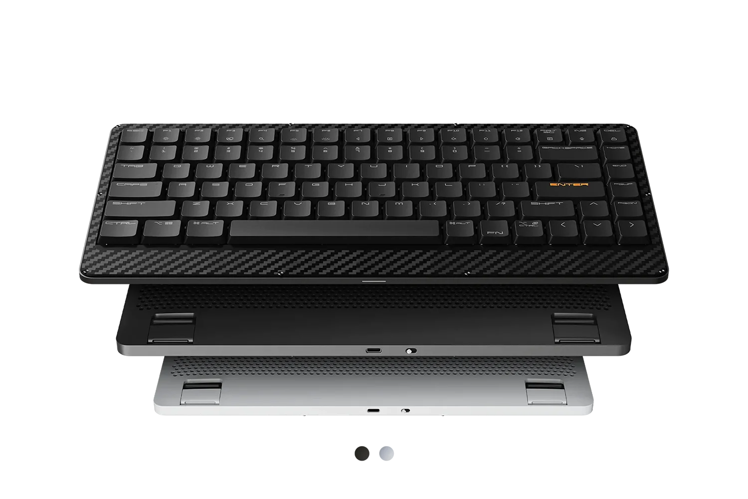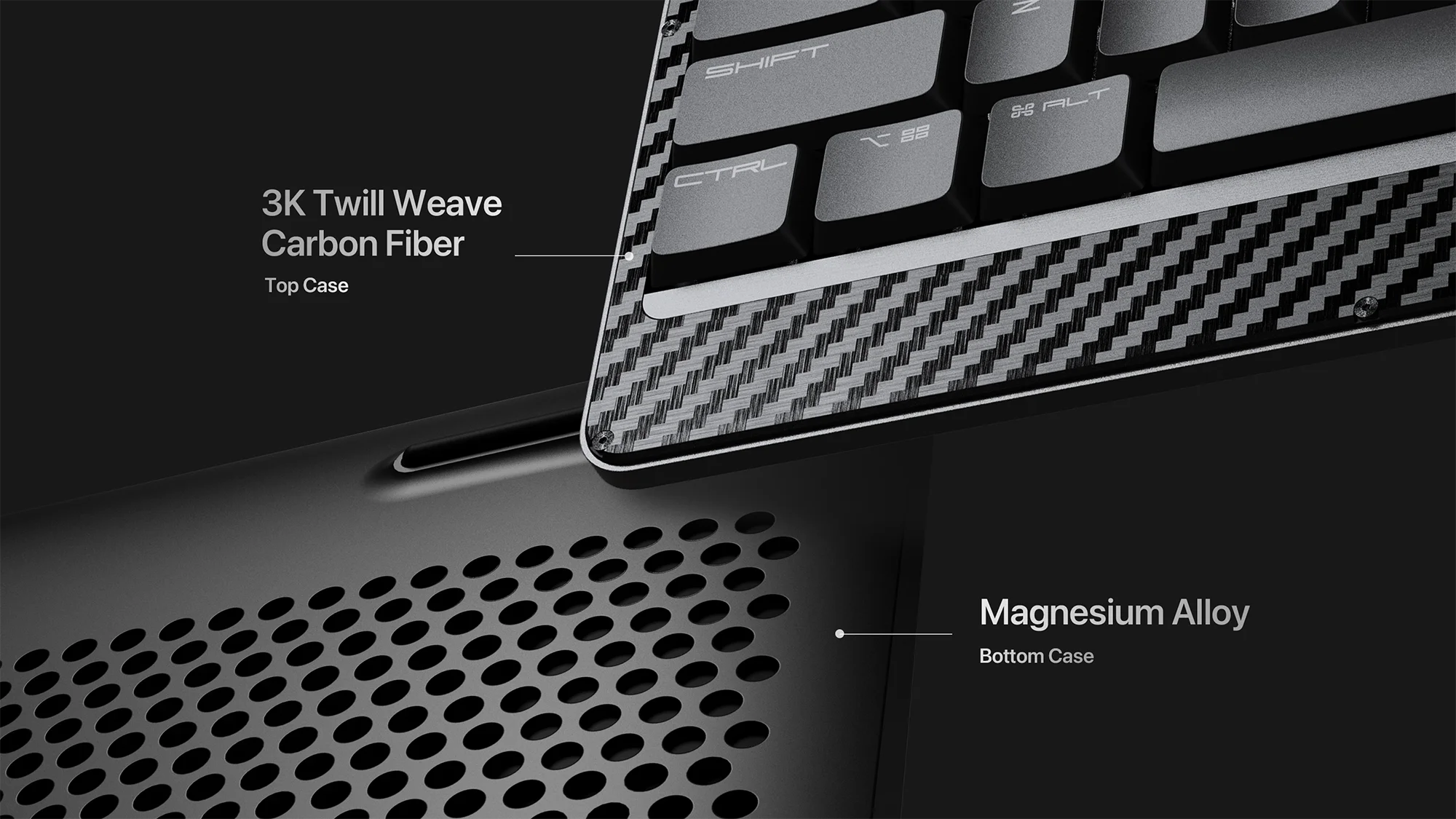 Weighing just 1.07 lbs (485g), Edge packs incredibly performance into an ultra-thin, light and portable design as a mechanical keyboard. The upper case of Edge is crafted from 3K twill weave carbon fiber, which is known for its durability and lightweight, to offer strong protection and yet a gorgeous look.