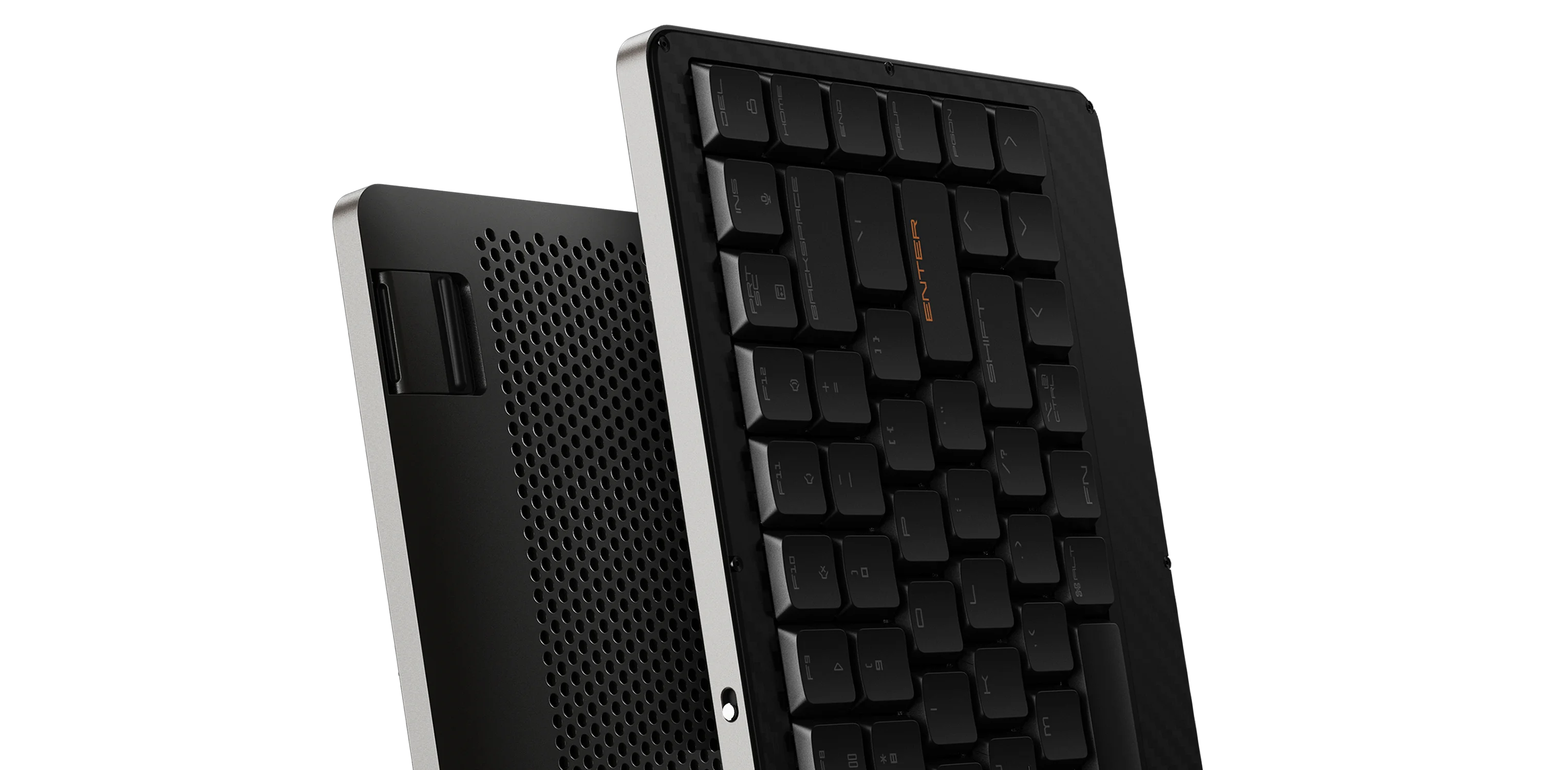 Weighing just 1.07 lbs (485g), Edge packs incredibly performance into an ultra-thin, light and portable design as a mechanical keyboard. The upper case of Edge is crafted from 3K twill weave carbon fiber, which is known for its durability and lightweight, to offer strong protection and yet a gorgeous look.