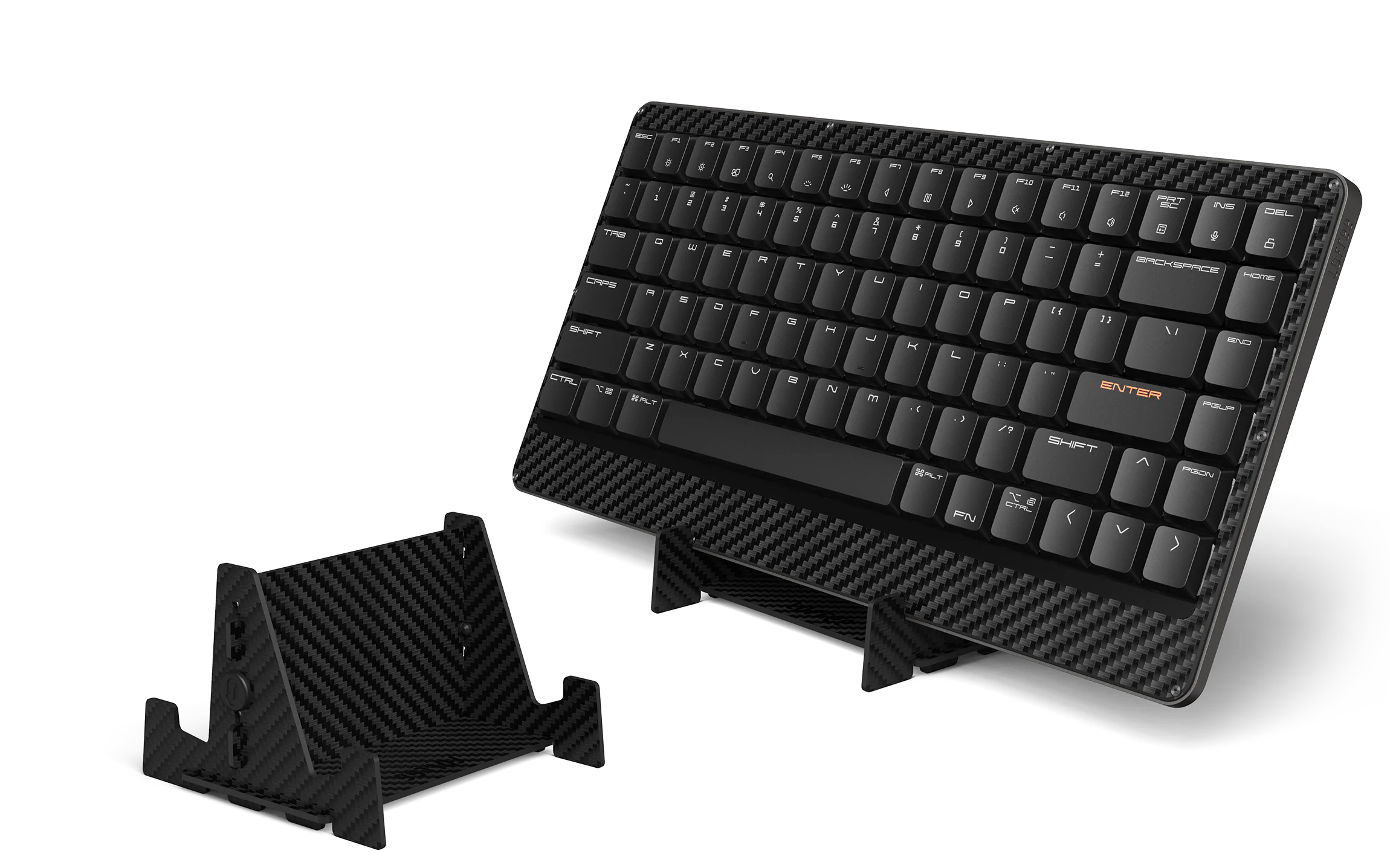 Zero is a carbon fiber display stand that made of leftover materials during the production process. It is perfect for displaying Lofree Edge, other keyboards, tablets and laptops.