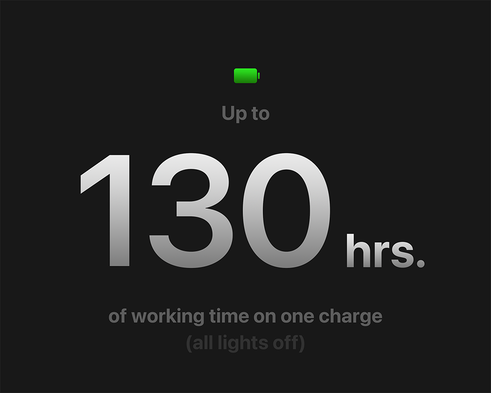 Working Time (All lights off): Up to 130 hours