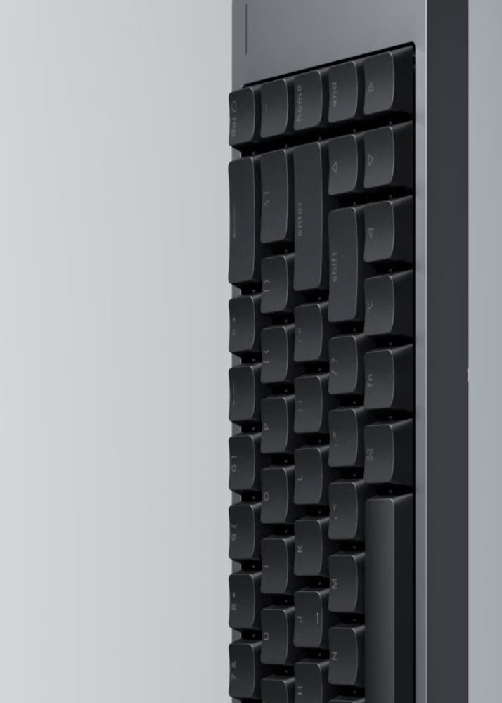 Flow 2 features a built-in capacitive touch bar on its side, an elegant and intuitive way to adjust volume and screen brightness. It replaces traditional knobs and buttons with fluid gestures, seamlessly blending into the keyboard’s minimalist aluminum frame. Designed for efficiency and style, the touch bar keeps your setup clean while keeping control literally at your fingertips.