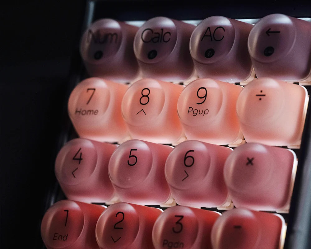 The Lipstick numpad adopts a gasket mount structure, using flexible silicone layers between the plate and case to create a gentle, cushioned typing experience.