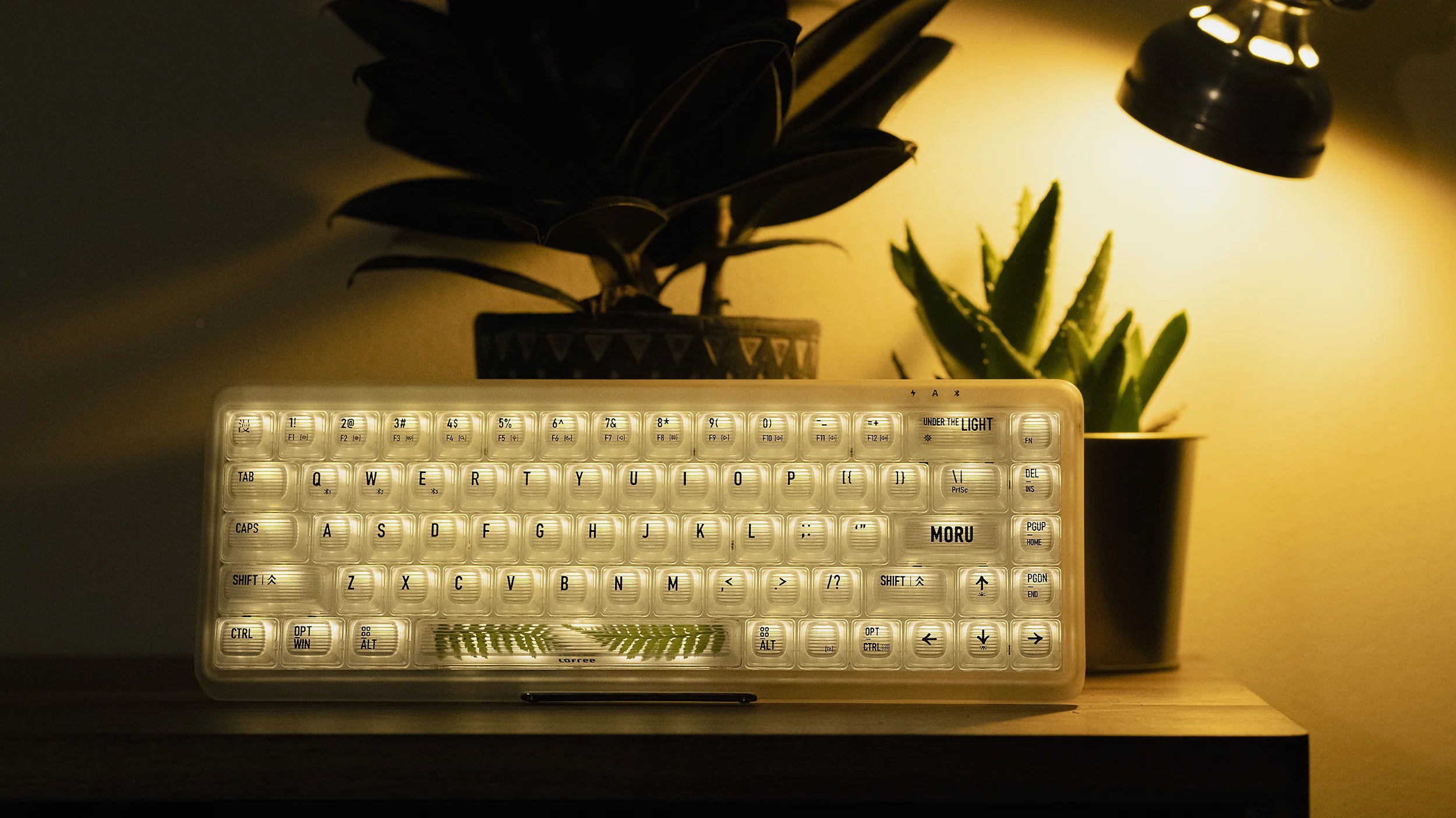 With its reeded glass texture keycap, and 7 lighting modes soothing warm yellow backlights, the 1% Moru is more than a keyboard —it's tool to give you an atmosphere of warmth and creativity. Experience warmth and creativity with the 1% Moru keyboard — more than just a keyboard, it's your tool to a serene atmosphere.
