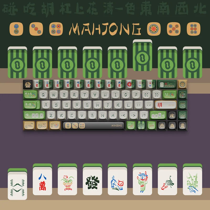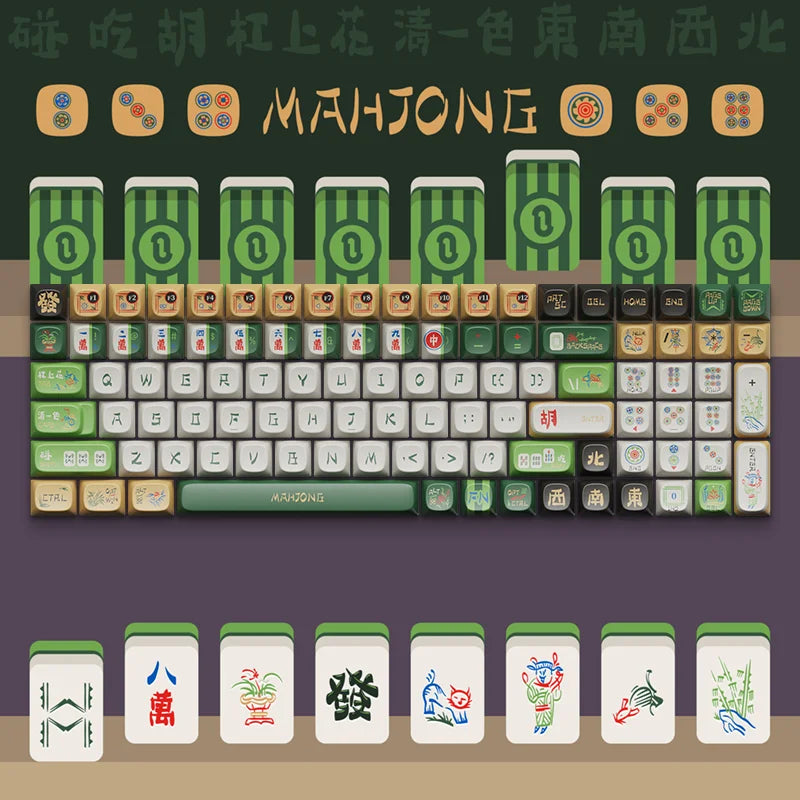 Inspired by the Chinese game, our "Mahjong Mastery" keycap set brings the essence of pastime to your fingertips. Featuring the classic green and white color scheme of Mahjong tiles. The “Enter”key, marked with "中" symbolizes victory in Mahjong’s language, turning every keystroke into a potential triumph. Directional keys are adorned with the cardinal directions "east(东), west(西), south(南), north(北)," while the numerals 1-9 are beautifully rendered in Chinese, mirroring the actual Mahjong tiles.
