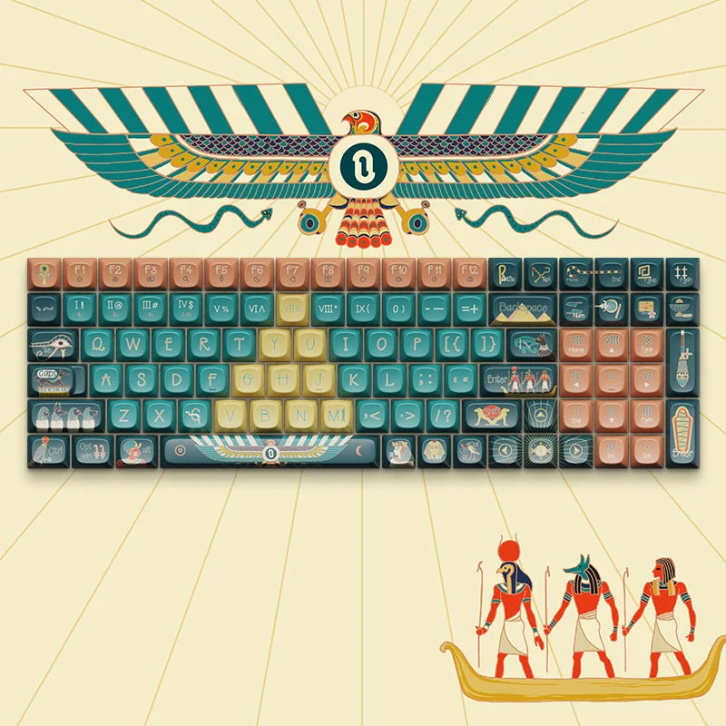 Explore the grandeur of ancient Egypt with our "Pharaoh" keycaps. Adorned with images of enigmatic pyramids and exquisite temple frescoes, the set of keycap is a tribute to the splendor of a civilization defined by its architectural and artistic achievements. These keycaps bring the essence of ancient Egyptian power and beauty right to your fingertips.