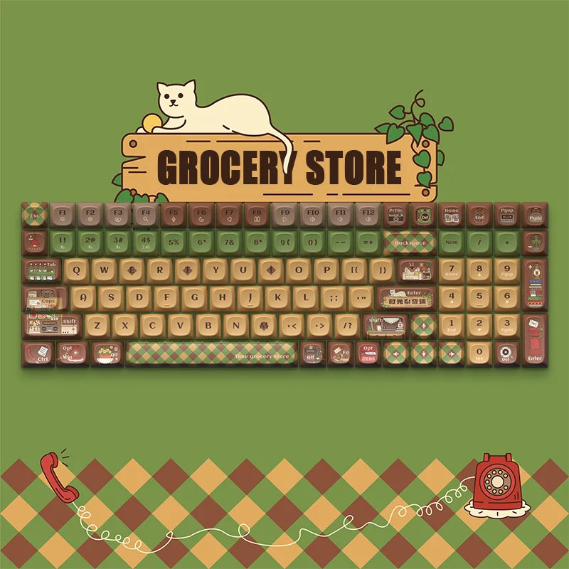 Rediscover the charm of 1980s and 90s Chinese convenience stores with our "Time Grocery Store" keycaps. Adorned with designs of classic snacks, household items, magazines, radios, and TVs, each key evokes the cherished memories of childhood, with warm coffee hues accented with vivid green and red, each keycap brings you to the past, to your childhood memories.