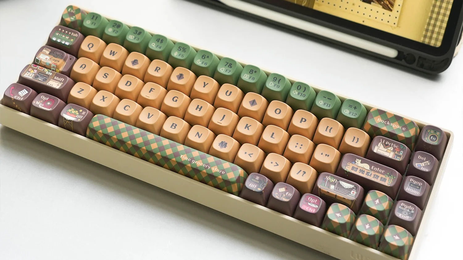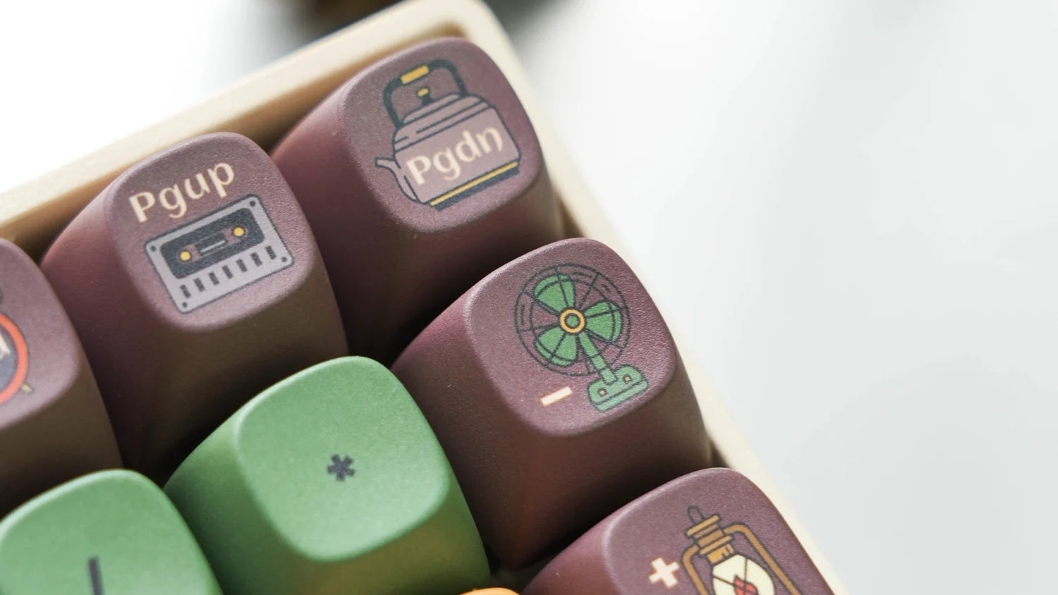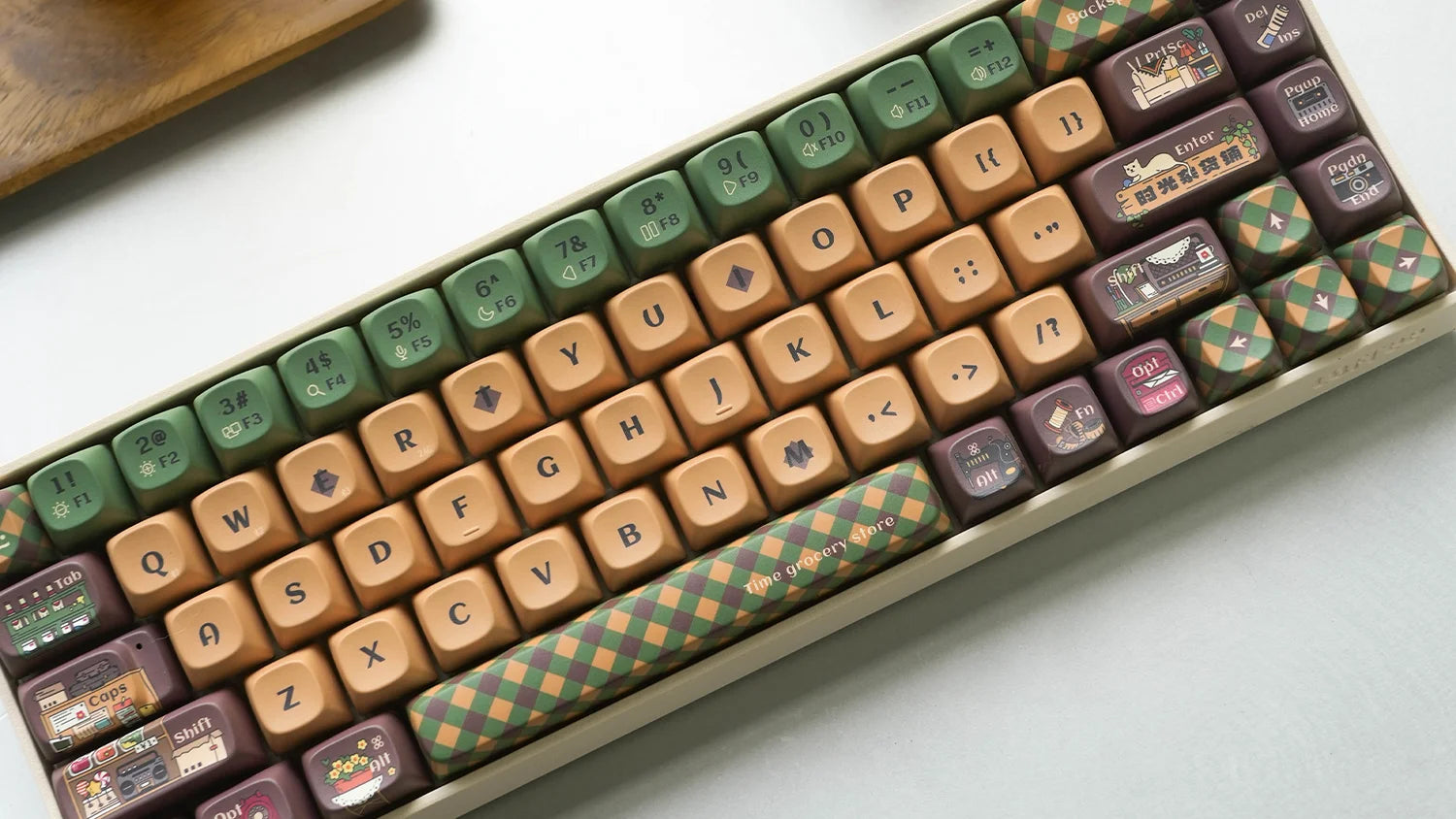 Rediscover the charm of 1980s and 90s Chinese convenience stores with our "Time Grocery Store" keycaps. Adorned with designs of classic snacks, household items, magazines, radios, and TVs, each key evokes the cherished memories of childhood, with warm coffee hues accented with vivid green and red, each keycap brings you to the past, to your childhood memories.