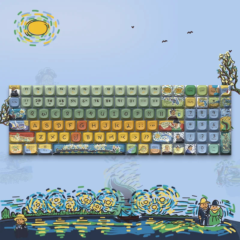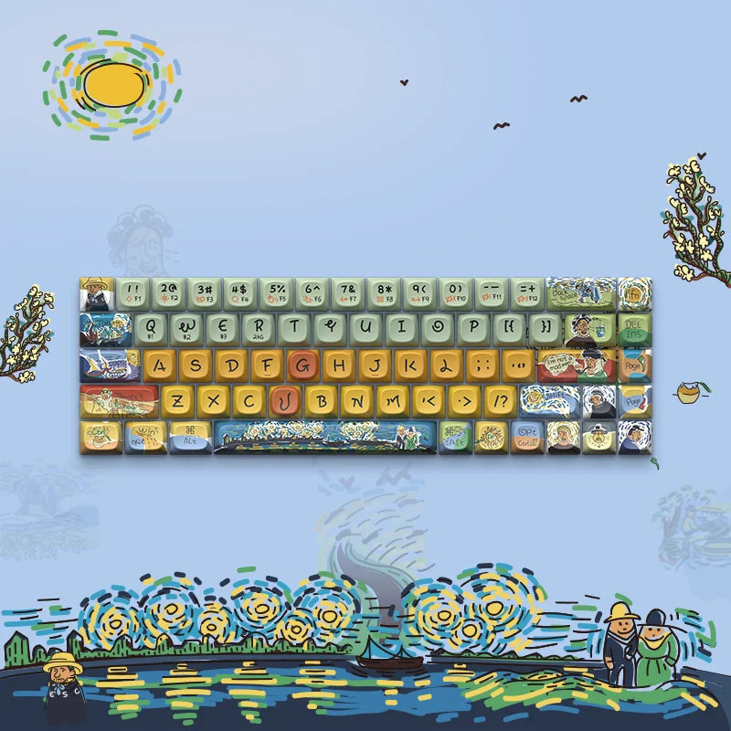 Transform your typing experience with our "Van Gogh Visions" keycaps, which bring the artistry of Vincent van Gogh right to your keyboard. Featuring details from masterpieces like "The Starry Night," "Van Gogh Self-Portrait," and "Vase with Fifteen Sunflowers," each key is a brushstroke of genius. Designed not just for a keyboard but as pieces of art, these keycaps inspire creativity and add a touch of timeless beauty to your daily interactions. Dive into the vibrant world of Van Gogh every time you type.